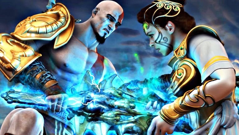 Ela responde que foi proibida por seu pai de revelar qualquer informação. Ao perguntar quem era seu pai, Kratos finalmente descobre que Zeus é seu verdadeiro progenitor.